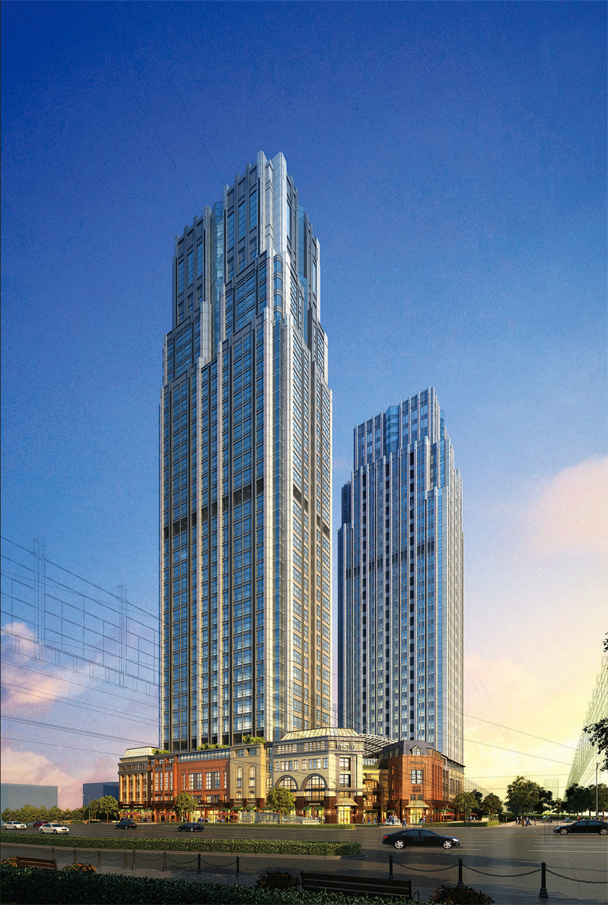 項目位于福建省莆田市東園西路東北側,北面與西山小區(qū)相鄰,距離市中心約1.9千米。項目總用地面積約2.2萬平方米,總建筑面積為14.3萬平方米。整個綜合體由三棟辦公樓(高度分別為180米、150米和100米)和5層高的商業(yè)裙房組成。