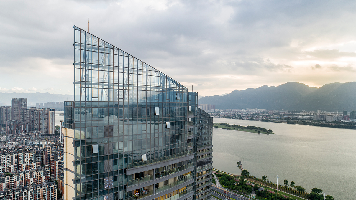 地塊位處橘園洲大橋立交旁,是烏龍江沿線地塊承上啟下的重要節(jié)點(diǎn)。項(xiàng)目從城市設(shè)計(jì)的角度出發(fā),將4棟高層體量規(guī)整為3棟,向上堆疊,形成130米、140米、150米三棟超高層建筑。建筑外立面采用玻璃結(jié)合陶板的全干掛幕墻系統(tǒng),三角形頂部幕墻的形體設(shè)計(jì)帶有江畔揚(yáng)帆的寓意,從建筑表皮及建筑形體兩方面區(qū)別于沿線其他的高層住宅樹(shù)立項(xiàng)目的江畔橋頭地標(biāo)性建筑形象。