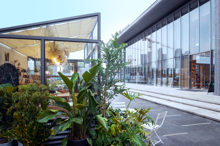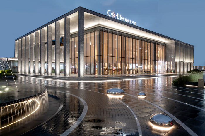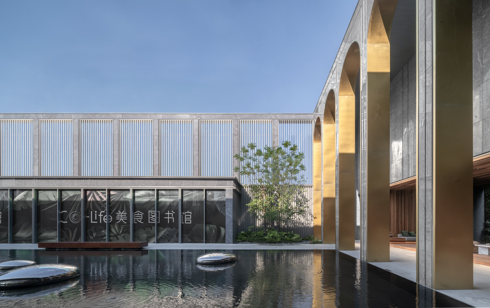 在Co-Life美食圖書(shū)館的主題下,用適度的表達(dá)讓建筑、景觀、室內(nèi)相互疊加,融合成為渾然一體的多重場(chǎng)景呈現(xiàn)。