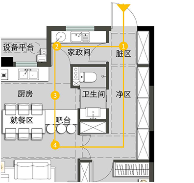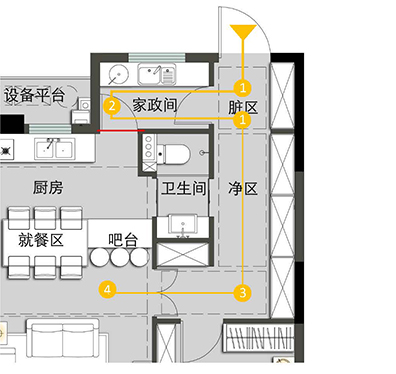 如是非常時期,家政間與廚房間聯(lián)通關閉,家政間作為家用洗消間,外出歸來、洗消之后保護家人的安全!