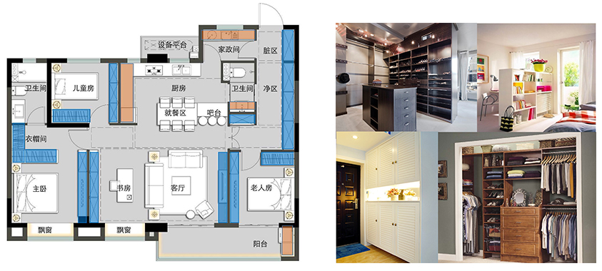 注重細節(jié)的設計,比如臥室門垛,增加至0.5米,就可以增加一面墻的完整收納柜。