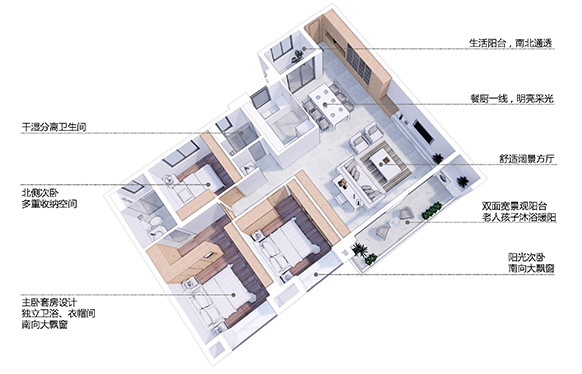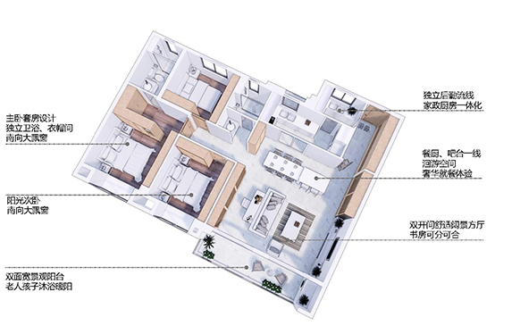 開敞廚房、中西就餐區(qū)、多功能寬廳、全景陽臺,面積近60平方米!形成了整個生活的核心空間!聚會、交流、活動等,任你選擇創(chuàng)造。