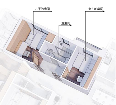 為孩子營造快樂天地,設置兩個獨立兒童套房。晚上,把推拉門一關就是兩個兒童套房、獨立天地,擁有專用的獨立衛(wèi)生間;白天打開推拉門,孩子可以在客廳與臥室穿梭。
