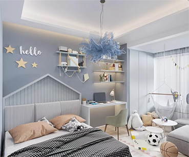 兒童房不只是一個空間,更是一段獨一無二的時光,是承載整個童年回憶的地方;兒童房的面積不需要太大,但功能和收納空間一定要足夠。這樣可以培養(yǎng)孩子從小學會收納,把玩具、生活用品、衣物分門別類地裝進壁柜里,也讓寶貝們在舒適的空間成長和學習。