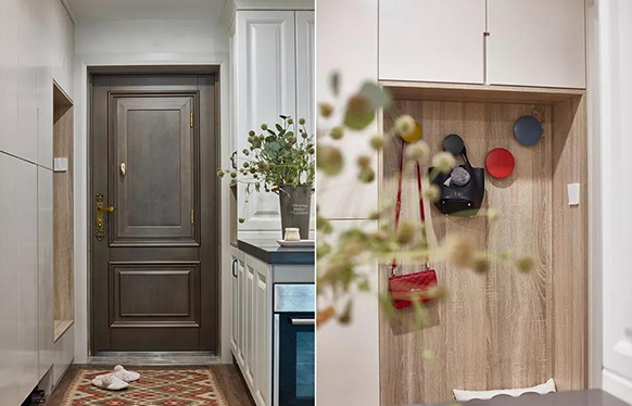 一般的家庭玄關的基本功能就是玄關鞋柜。這款產品給客戶提供的除了玄關柜外,還有兩大功能:一是在廚房的北側增加了家政收納間,以增加生活的便利。買菜歸來,從家政間直接進入廚房,避免弄臟餐廳;二是增強玄關柜的分級及規(guī)模;受疫情的提醒,我們把玄關位置設置為臟區(qū)和凈區(qū);即解決了衛(wèi)生問題,又解決了疫情期間物資儲存的需求。老人帶寶寶玩耍歸來,可以先在衛(wèi)生間洗干干凈凈后,再進入家庭內... ...