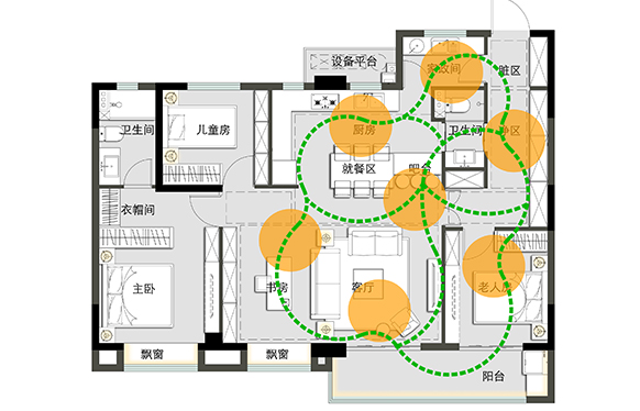 視覺放大、交融共享中體驗到家庭的溫情;媽媽在忙碌于廚房時可以看到寶寶在玩耍,爸爸與爺爺在聊天,奶奶在空中花園中擺弄著......這個場景叫做“溫馨”。