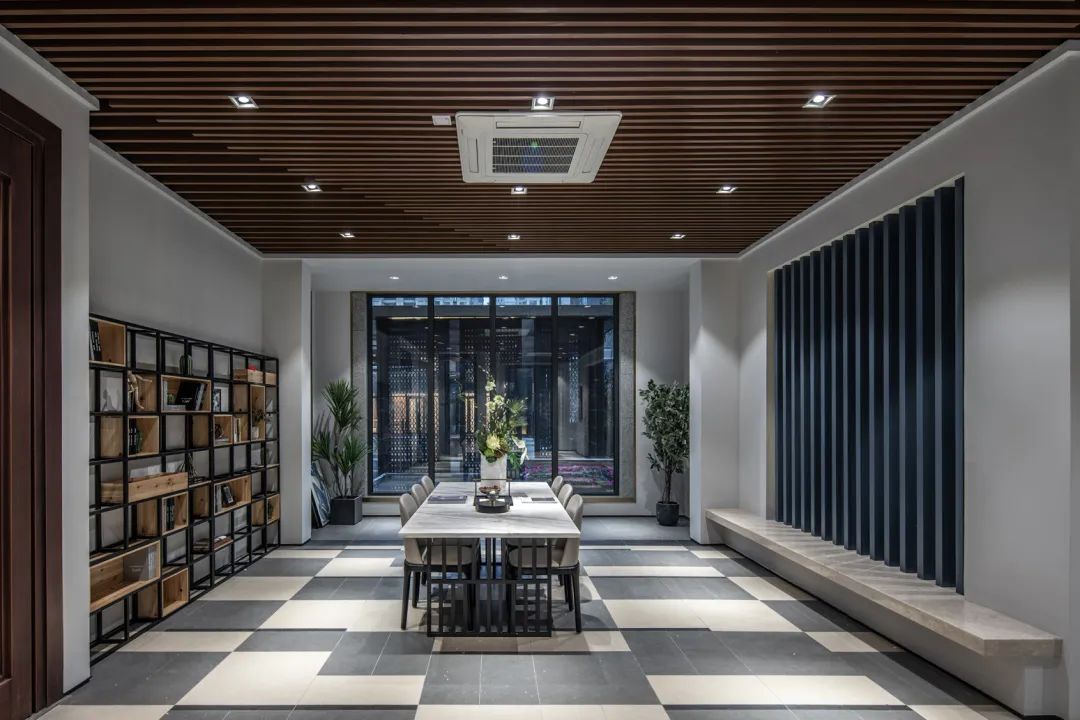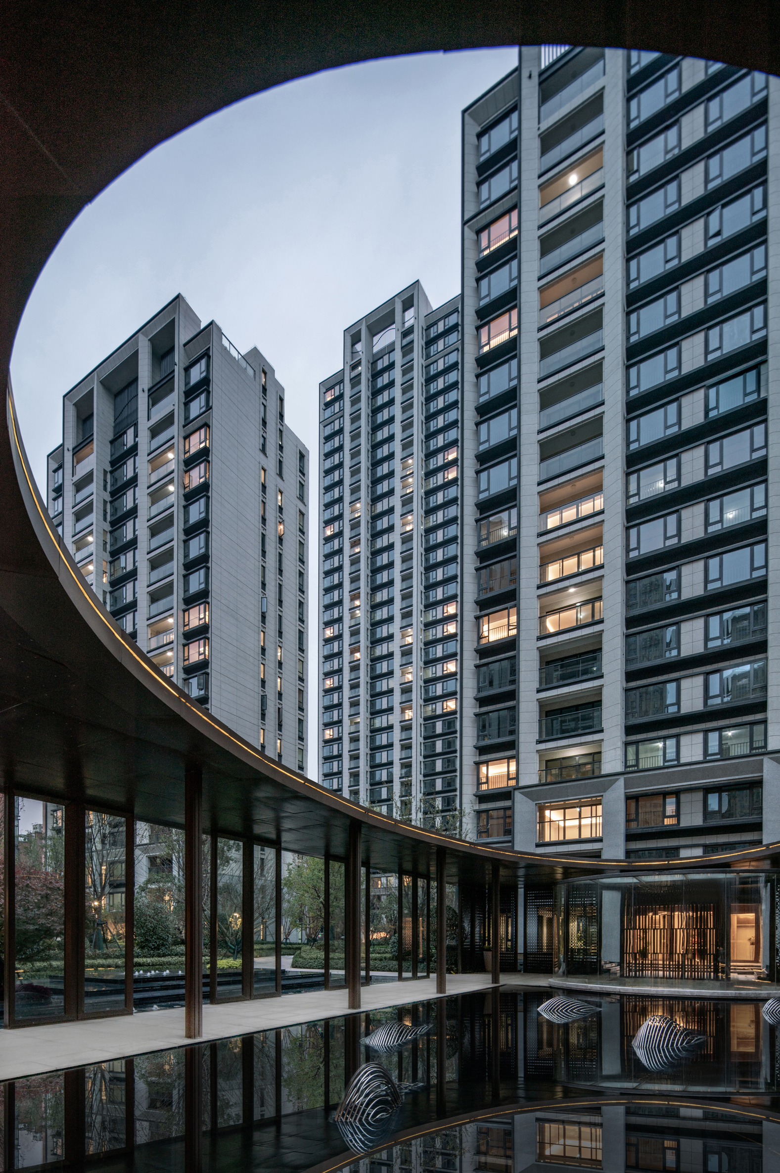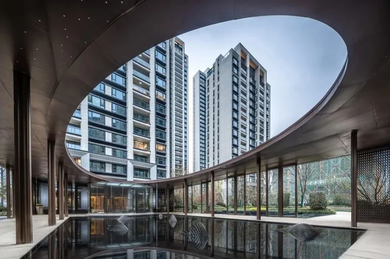 架空層設(shè)計(jì)-住宅區(qū)公共空間包括入戶(hù)門(mén)廳、公共配套等,較為常見(jiàn)的處理方式是以門(mén)廳作為室內(nèi)外空間的界限,并通過(guò)路徑和空間來(lái)營(yíng)造歸家儀式感。隨著對(duì)居住環(huán)境品質(zhì)的更高需求,底層架空的設(shè)計(jì)逐漸流行起來(lái)。架空后的底層平面自然形成半室外空間用于鄰里交往、景觀(guān)營(yíng)造、社區(qū)活動(dòng)等多樣化功能,一定程度上解放了用地范圍內(nèi)的土地資源,也革除了建筑內(nèi)外空間界限。但在實(shí)際項(xiàng)目操作過(guò)程中,常因底層架空的歸屬邊界不清晰,導(dǎo)致成為建筑、室內(nèi)、景觀(guān)三不管的盲區(qū)。因此在這個(gè)項(xiàng)目中,我們牽頭整合了室內(nèi)和景觀(guān)的設(shè)計(jì)思路,建筑保證空間的連續(xù)性,地面造景交由景觀(guān)延伸,吊頂設(shè)備由室內(nèi)統(tǒng)一設(shè)置,最后圖紙整合,實(shí)現(xiàn)一體化的高完成度空間。