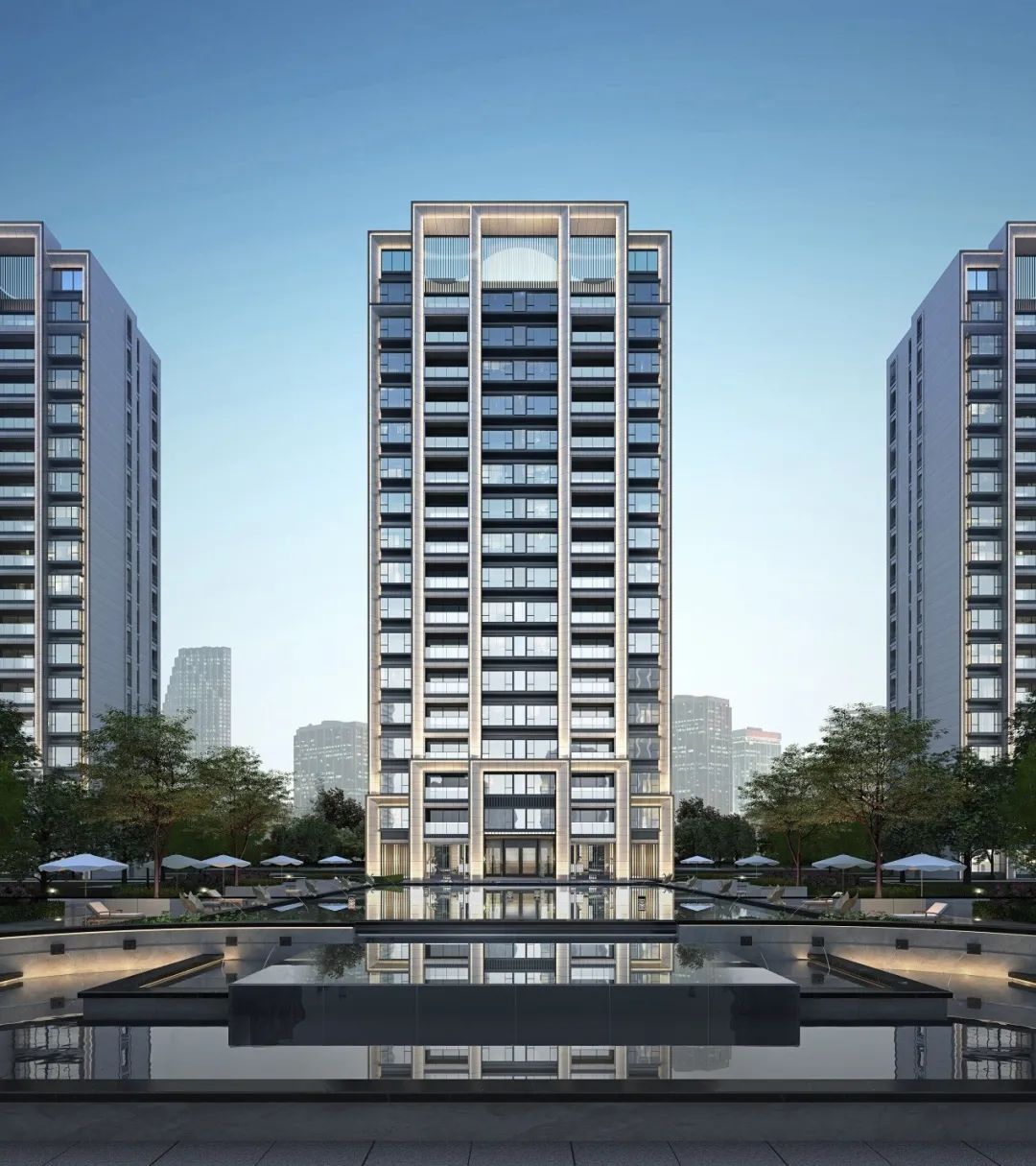 沿主路設(shè)置形象會(huì)所入口,進(jìn)入小區(qū)后利用兩側(cè)景觀(guān)廊道和對(duì)景,圍合出禮儀氣質(zhì)的中軸草坪, 從舒適安靜的體驗(yàn)中進(jìn)入架空大堂的歸家路線(xiàn),也讓社區(qū)居民在回家時(shí)產(chǎn)生抑揚(yáng)頓挫的空間體驗(yàn)變奏,強(qiáng)化了高端豪宅的格調(diào)氣質(zhì)