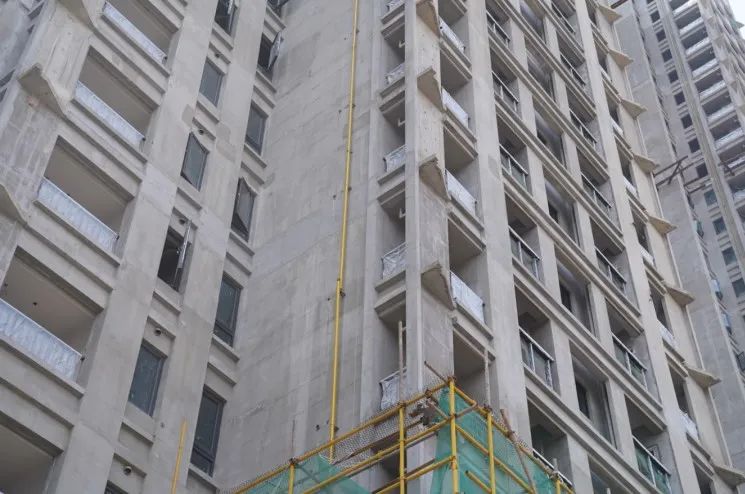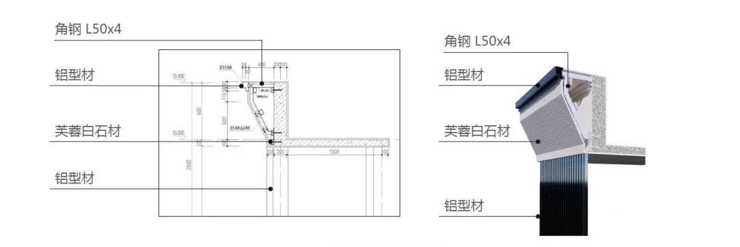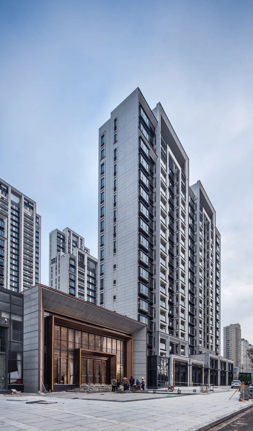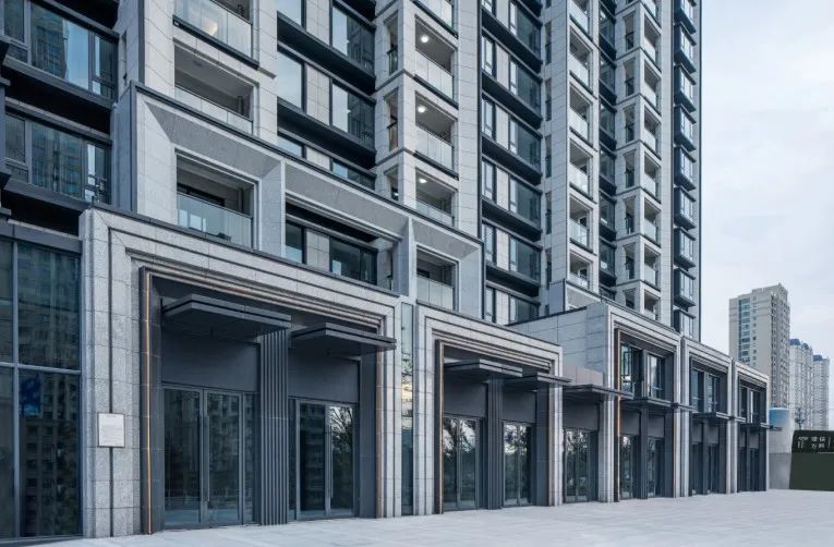 -項(xiàng)目本身受制于成本等因素,大區(qū)立面以土建為主,因此項(xiàng)目中立面的主要線(xiàn)條元素“斜切面”的完成度就成了重要節(jié)點(diǎn)研究對(duì)象。我司通過(guò)與業(yè)主及幕墻等合作方的多方協(xié)商論證,最終選擇了以成品GRC來(lái)取代鋁板幕墻,同時(shí)達(dá)到挺拔現(xiàn)代的美感。