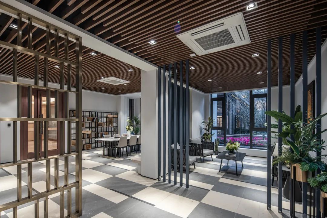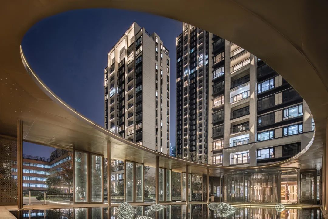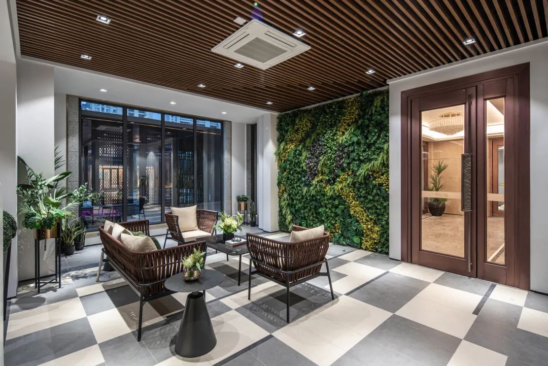 云著的酒店式大堂中空挑高約7米,放大了視覺(jué)空間尺度感,給住戶(hù)帶來(lái)每一次進(jìn)出的尊貴禮遇。