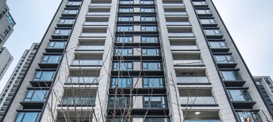 多種材質(zhì)的拼接和精細(xì)化的細(xì)節(jié)處理。采用開(kāi)放式幕墻體系,石材鋁板幕墻與超白玻相結(jié)合,突顯單元的輕盈現(xiàn)代感。