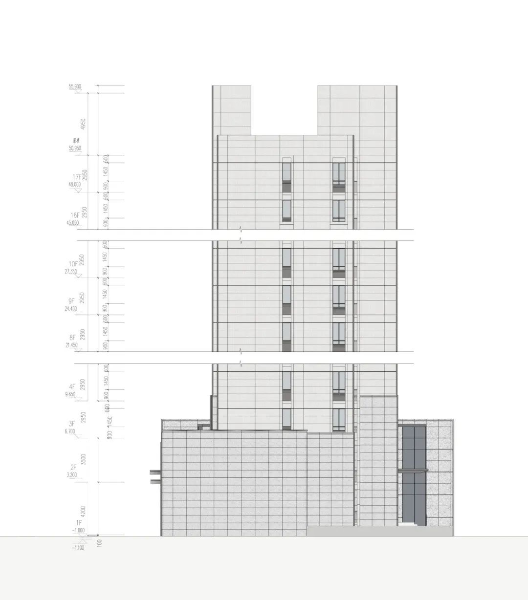 對(duì)于建筑立面氣質(zhì)的塑造,設(shè)計(jì)團(tuán)隊(duì)決心通過(guò)簡(jiǎn)潔的現(xiàn)代主義設(shè)計(jì)語(yǔ)匯為溫州這座歷史悠久的城市展現(xiàn)一個(gè)獨(dú)特的富有人文精神的未來(lái)。試圖抓取城市的時(shí)代感,來(lái)拓?fù)淞⒚娴默F(xiàn)代意向,在低成本的約束下完成了立面體系的一次創(chuàng)新迭代。